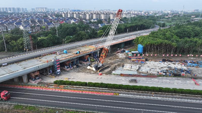 目前,滬武高速改擴(kuò)建太倉境內(nèi)各標(biāo)段施工有序推進(jìn)。圖為...